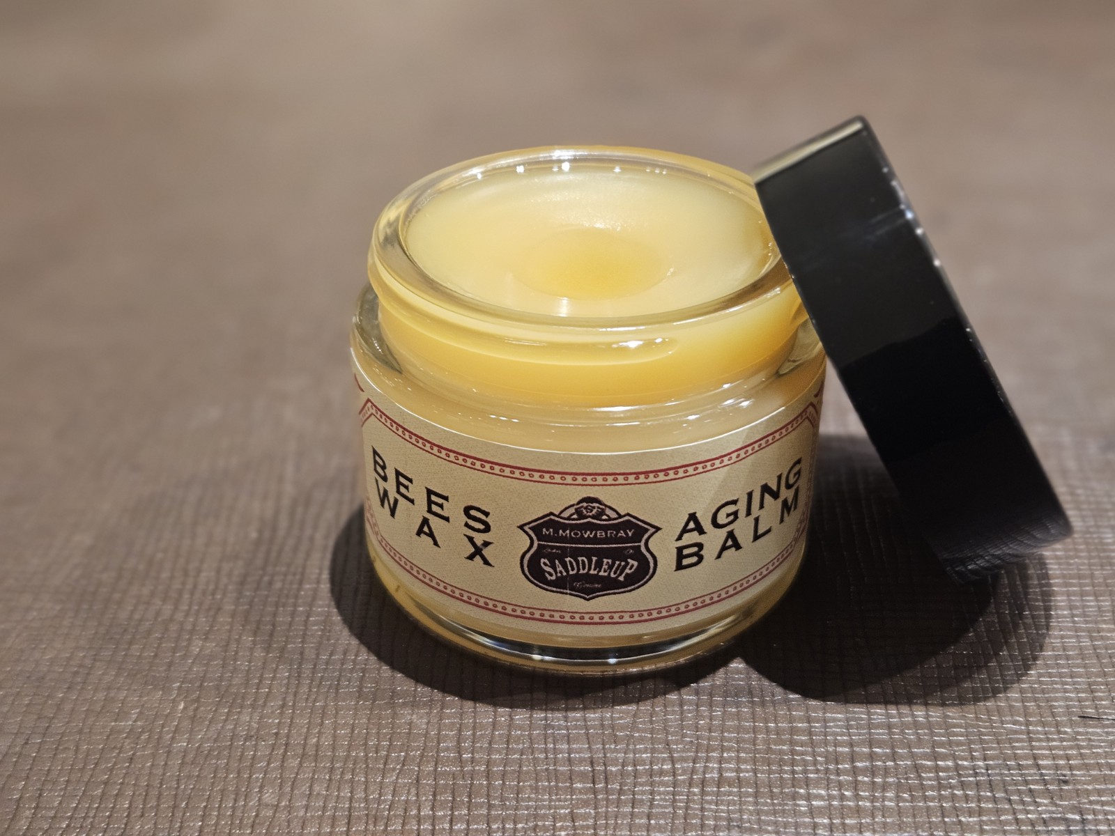 オイルドレザー製品の皮革製品全般に使用可能な、純度の高い天然の蜜蝋(ビーズワックス)を配合した栄養・保湿バームです。