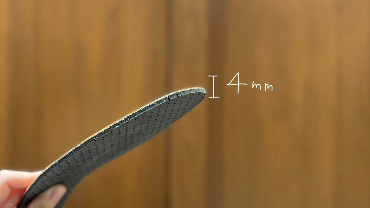 M.MOWBRA プレジデントクッション+は、4mm厚なのでカカトに指1本分の隙間ができる靴のサイズ調整にオススメです。