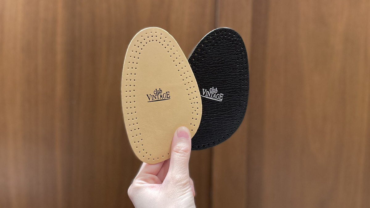 M.MOWBRA プレジデントハーフは、つま先のみのインソールで脱いだ時にも目立ちにくいいです。厚みは薄めのタイプなのでサイズ感をあまり変えたくない方にオススメです。